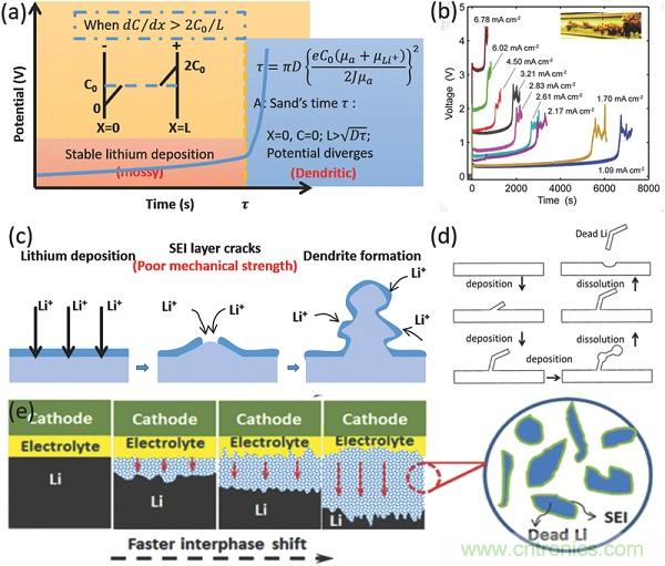 d)鋰枝晶引起的安全問(wèn)題;