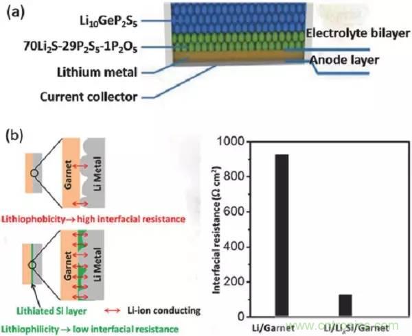 圖15.通過(guò)涂覆不同的穩(wěn)定材料,改善固體無(wú)機(jī)電解質(zhì)和鋰箔之間的固-固界面