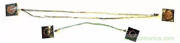 圖3:上方是用銅帶制作的柔性饋電線圈;下方是早期用24號(hào)硬線做的饋電線圈原型。