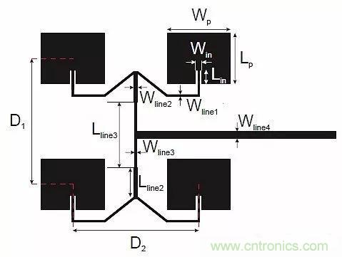 圖7:天線版圖。天線尺寸可以在前述參考文獻(xiàn)中找到。