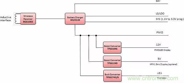 圖15:TI可穿戴設(shè)備用無(wú)線供電解決方案框圖。