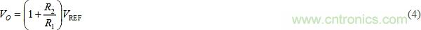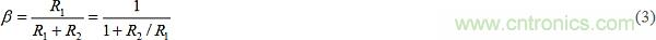 Ri(單位為V/A或歐姆)是電流-電壓轉(zhuǎn)換的整體增益。為感測(cè)輸出電壓VO,該電路使用分壓器R1-R2產(chǎn)生電壓ßVO,其中: