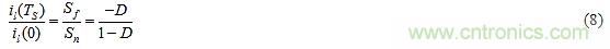 (a)il(TS)的極性與il(0)的極性相反; (b)對(duì)于D < 0.5,在足夠的周期數(shù)之后,其幅值將減小直至消失;但對(duì)于D>0.5,將趨于從一個(gè)周期增加到下一個(gè)周期,導(dǎo)致前述的亞諧波不穩(wěn)定。