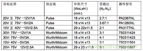 凌力爾特公司與主要的磁性元件制造商進行了合作,以生產(chǎn)供 LT3748使用的預設(shè)計型反激式變壓器。表 1是一張縮略表,羅列了一些推薦使用的市售變壓器,制造商為 Wurth Electronics和 Pulse Engineering 公司。完整列表請見 LT3748 的產(chǎn)品手冊。這些變壓器一般能夠承受 1,500VAC 的主端至副端擊穿電壓(持續(xù)時間為一分鐘)。也可以使用擊穿電壓更高的變壓器和定制變壓器。