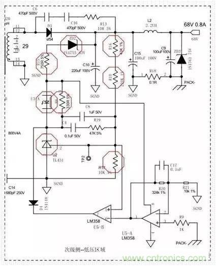 C8、C4、R19組成了431所需的回收回路補償,以便穩定控制回路。