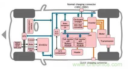 圖1:汽車EV系統(tǒng)架構(gòu)示例