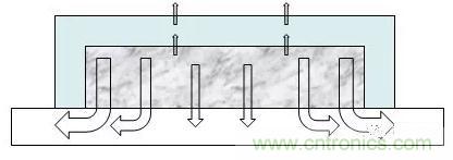 功率MOSFET內(nèi)部通常是由許多晶胞單元并聯(lián)而成,如圖2所示。通常假定芯片內(nèi)部處于理想的熱平衡狀態(tài),整個(gè)硅片的結(jié)溫完全一致。然而在實(shí)際條件下,硅片邊沿?zé)嶙璧停鐖D3所示;由于硅片焊接的不均勻,各局部區(qū)的熱阻也不一致;此外,各局部區(qū)的閾值電壓VTH也不完全相同,它們通過(guò)的漏極電流,也就是(VGS-VTH)和跨導(dǎo)乘積,也不完全相同。上述因素導(dǎo)致局部區(qū)溫度也不一樣。