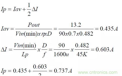 依據變壓器的圈比關系,可以初步計算出變壓器的應力(Stress)是否符合選用零件的規格,計算時以輸入電壓264V(電容器上為380V)為基準。