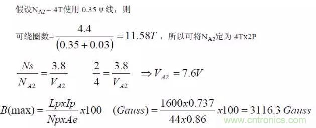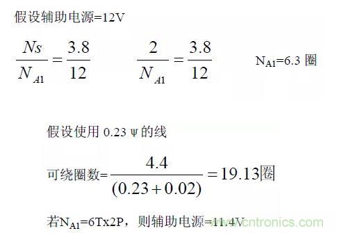 依據變壓器的圈比關系,可決定輔助電源的圈數及電壓。