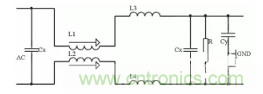 圖4:開關(guān)電源交流側(cè)EMI濾波器電路