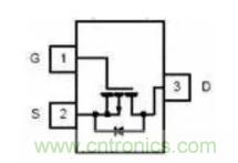 仔細看看你會發(fā)現(xiàn),這兩個圖似乎有差別,對了,這實際上是兩種不同的增強型場效應管,第一個那個叫N溝道增強型場效應管,第二個那個叫P溝道增強型場效應管,它們的的作用是剛好相反的。前面說過,場效應管是用電控制的開關,那么我們就先講一下怎么使用它來當開關的,從圖中我們可以看到它也像三極管一樣有三個腳,這三個腳分別叫做柵極(G)、源極(S)和漏極(D),mpn中的貼片元件示意圖是這個樣子: