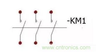 來(lái)看一下接觸器在電路中是怎樣表示的,下圖為接觸器主觸點(diǎn)在電路圖中的表示
