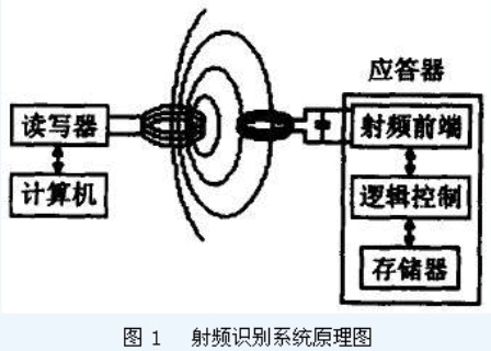 通常情況下, RFID 的應(yīng)用系統(tǒng)主要由讀寫器和RFID 卡兩部分組成的,如圖1 所示. 其中,讀寫器一般作為計(jì)算機(jī)終端,用來實(shí)現(xiàn)對(duì)RFID 卡的數(shù)據(jù)讀寫和存儲(chǔ),它是由控制單元、高頻通訊模塊和天線組成.而RFID 卡則是一種無源的應(yīng)答器,主要是由一塊集成電路( IC) 芯片及其外接天線組成,其中RFID 芯片通常集成有射頻前端、邏輯控制、存儲(chǔ)器等電路 ,有的甚至將天線一起集成在同一芯片上 .