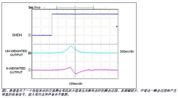 一個能夠接受、能夠檢測到的咔嗒聲抑制電平取決于多個因素:待測耳機/揚聲器的效率、人耳到轉換器之間的典型距離、SHDN循環頻率以及收聽時的背景噪聲電平等。