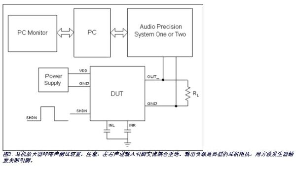Maxim采用了Audio Precision的系統1和系統2 (推薦)音頻分析儀測量咔嗒聲(圖3),也可以采用其它廠商類似測試設備。所推薦的指標KCP能夠客觀衡量音頻放大器的咔嗒聲。