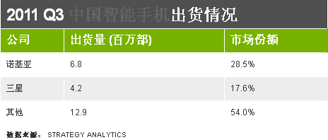- 諾基亞仍占中國(guó)智能手機(jī)市場(chǎng)份額為28%