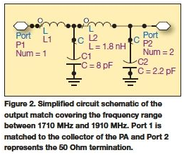 圖2顯示的是具有包注模TxM的功放部分的輸出匹配,它有兩種情況:不帶屏蔽以及在包注模上施加屏蔽。該雙端口模擬是采用Ansoft的3D EM軟件工具HFSS實現的。