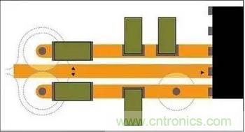 時鐘和控制線路應由內部接地層或頂層接地灌流(ground pour)與RF信號線路隔離。如果不能使用接地隔離信號,那么線路布線應確保直角交叉。因為時鐘或控制線路發射的磁通線路會圍繞干擾源線路的電流形成放射柱形等高線,它們將不會在接收器線路中產生電流。放慢上升時間不但可降低轉折頻率,而且還有助于減少干擾源的干擾,但時鐘或控制線路也可充當接收器線路。接收器線路仍可作為將寄生信號導入器件的導管。