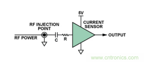 具體而言,這些測試都采用 “直接功率注入法”完成,這是一種通過電容將RF信號耦合至特定器件引腳的方法。根據待測IC的類型,針對不同的RF信號功率水平和頻率范圍,測試器件的每路輸入。圖4顯示了在特定引腳上執行直接功率注入測試的原理示意圖。