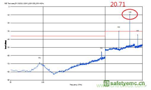 首先,針對三次諧波分析雜散輻射來源是否通過傳導傳播,通過測試驗證此頻率下傳導雜訊的裕量在9dB以上。接下來的思路轉移到了輻射的雜訊上。