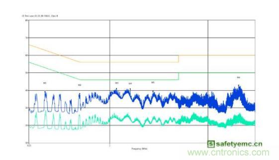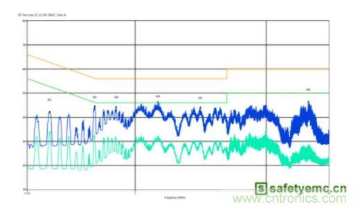 最后我們再進入暗室完成一次全頻帶范圍內的輻射雜散掃描和傳導掃描,最終結果請參考圖10和圖11所示。可以看出輻射雜散結果有明顯改善,同時傳導輻射也有所改善。