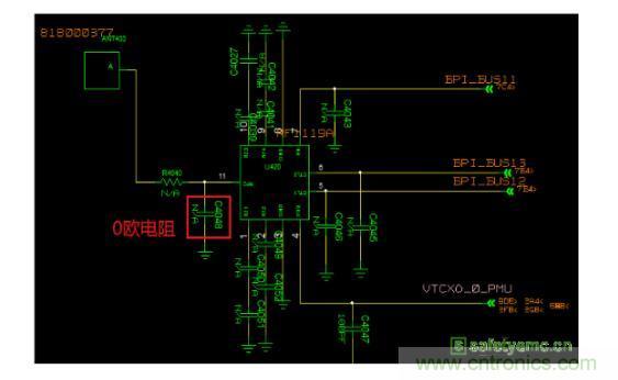 從測試結果來看,諧波超標很嚴重,這一點與天線區(qū)域的雜訊信號很相似,考慮到傳導嫌疑已經(jīng)排除,因此分析的重點集中到了天線區(qū)域的非線性器件。從如圖4所示原理圖可以看出,天線的調諧開關是正常工作的,由于天線開關本身是非線性器件,因此首先確認天線開關的影響。將天線開關旁路(天線仍然正常)如圖5所示,發(fā)現(xiàn)此時2.55GHz的雜訊可以降低到-55.7dBm左右,因此可以確定天線區(qū)域的雜訊就是調諧開關造成的。