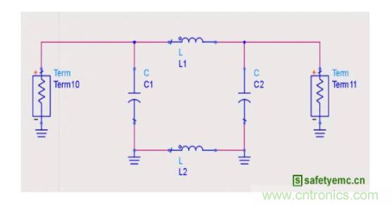 由于2.25GH大約是750MHz的三次諧波,因此我們首先針對750MHz做濾波設計。為了克服這種干擾應該對基帶信號加以濾波,阻止高頻成分傳播和搬移。如圖8所示是一種推薦電路,其中電容C1、C2和L2可作為備選,將此電路加在圖6黃色框圖標示的電源入射端口附近做濾波。