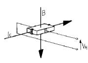 HX傳感器的核心是一個霍爾效應(yīng)發(fā)生器。1879年,Edward H. Hall發(fā)現(xiàn)了霍爾效應(yīng),在電流流經(jīng)一片薄傳導(dǎo)材料(霍爾發(fā)生器),并放在正交磁場中時,會發(fā)生這種效應(yīng)。然后電磁洛倫茲力將感應(yīng)電子,根據(jù)極性流到薄片邊緣。