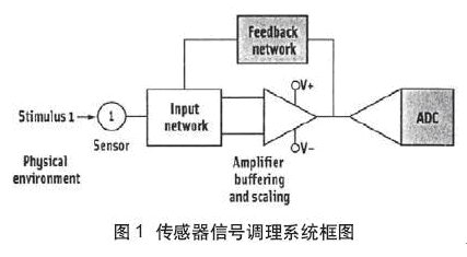 傳感器根據(jù)所測物理量的類型可分類為:測量溫度的熱電偶、電阻溫度檢測器(RTD)、熱敏電阻;測量壓力或力的應(yīng)變片;測量溶液酸堿值的PH電極;用于光電子測量光強的PIN光電二極管等等。傳感器可進一步分類為有源或無源。有源傳感器需要一個外部激勵源(電壓或電流源),而無源傳感器不用激勵而產(chǎn)生自己本身的電壓。通常的有源傳感器是RTD、熱敏電阻、應(yīng)變片,而熱電偶和PIN二極管是無源傳感器。為了確定與傳感器接口的放大器所必須具備的性能指標,設(shè)計人員必須考慮傳感器如下的主要性能指標: