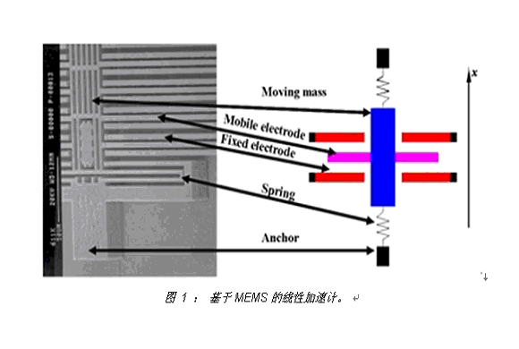 圖 1 : 基于MEMS的線性加速計。