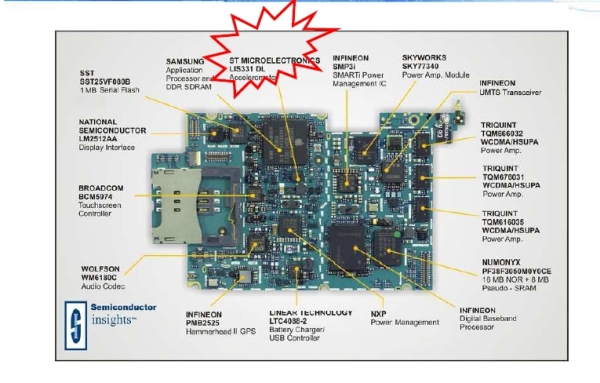 圖1:MEMS傳感器在移動電話和PDA中的應用