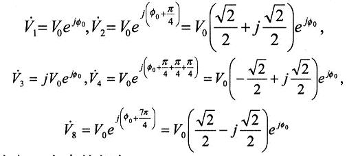 如果用Vo表示各發射極電壓的幅值,并取8路信號中的第1路信號的相位為參考值,則有: