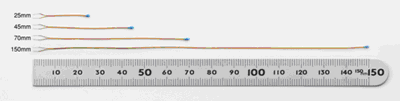 村田制作所開發(fā)了利用片式NTC熱敏電阻和片式PTC熱敏電阻(POSISTOR®) 為溫度測量元件的溫度測量裝置“Thermo-String”,并且已經完成了此既小型又能高精度地測量溫度的裝置的商品化工作。“Thermo-String”的溫度測量元件部分非常小,直徑小于1.6㎜,并且其鍍上柔韌的鍍層的導線的長度范圍很寬,為25mm到150mm,因此可以被用來測量很狹窄的地方的溫度。同時,由于在其溫度測量元件中使用了片式NTC熱敏電阻,我們備有寬電阻值范圍和各種B常數(shù)的豐富的產品陣容。