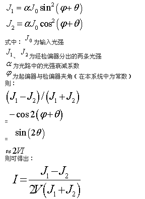 法拉第磁光效應:如果通過一次導線的電流為i,導線周圍所產生的磁場強度為H,當一束線偏陣光通過該磁場時,線偏陣光的偏振角度會發生偏振,其偏振角θ的計算公式為: