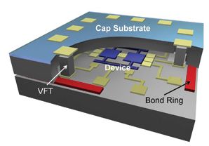 從傳感器的應(yīng)用來說,有些MEMS器件的封裝必須能夠和環(huán)境進(jìn)行相互影響。例如,在壓阻傳感器內(nèi),封裝應(yīng)力就會影響傳感器的輸出。當(dāng)封裝中不同材料混合使用時,它們的膨脹和收縮系數(shù)不同,因此,這些變化引起的應(yīng)力就附加在傳感器的壓力值中。在光學(xué)MEMS器件中,由于沖擊、震動或熱膨脹等原因而產(chǎn)生的封裝應(yīng)力會使光器件和光纖之間的對準(zhǔn)發(fā)生偏移。在高精度加速度計和陀螺儀中,封裝需要和MEMS芯片隔離以優(yōu)化性能(見下圖)。