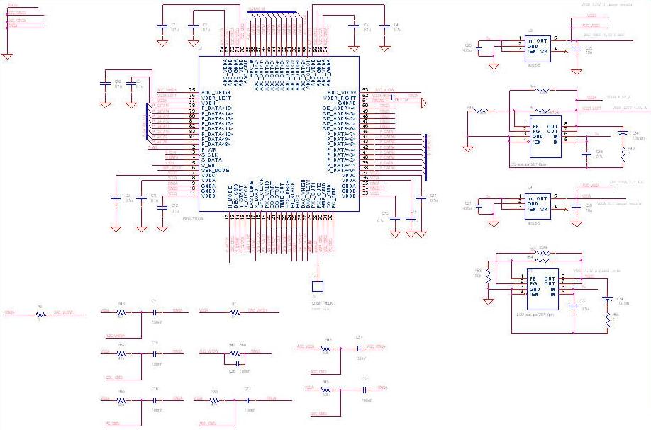 從硬件設計的原理圖可以看出,CMOS圖像傳感器只需提供少量的電源轉換器件即可正常工作,這是因為CMOS圖像傳感器功耗很小,只需采用USB總線提供的5v電壓就可以驅動其正常工作。另外CMOS圖像傳感器芯片僅需要少數的幾個外部控制信號即可完成圖像的采集(本系統的控制信號由USB數據傳輸板上的CPLD芯片提供),且芯片內部集成了輸出放大器,數模轉換模塊,只需修改芯片中的特殊寄存器值即可改變輸出放大器的偏置電壓,增益等參數,這樣就大大降低了硬件設計的復雜度和成品的體積,具有很高的應用價值。