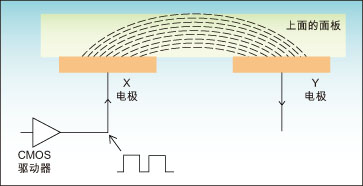 電容式觸控技術在廚房設備中的應用已經有幾年了,例如在烤箱和煎鍋的不透明玻璃面板后面采用分離按鍵實現。這些觸摸控制鍵逐漸替代了機械按鍵,因為后者具有使用壽命短、不夠衛生等方面的問題,而且還有在面板上開孔安裝按鍵的相關成本,圖1是電容式感應技術原理示意圖。