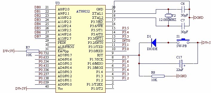 AT89S52 是一個低功耗,高性能CMOS 8 位單片機,兼容標準MCS-51 指令系統及80C51 引腳結構。