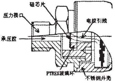 如圖3的敏感芯體封接在金屬螺紋底座上形成進壓的腔道后成為一個可安裝的壓力測量前端,見圖4。