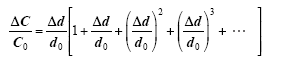 從(3)式可以看出,要提高靈敏度,應減小電容起始間隙d0 ,但d0的減小受到電容器擊穿電壓的限制,不僅加工精度要求高,電容傳感器的相對非線性誤差增加。