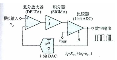 與常規(guī)PCM編碼器不同,∑一△變換采用過取樣技術(shù),將信號按時間分割,保持幅度恒定,具有高取樣率、噪聲整形和比特字長短的特點。變換可以在高取樣率、低分辨率的量化器中進行,可廣泛用于音頻信號數(shù)字化的∑一△模數(shù)編碼器(ADC)及數(shù)字信號還原為模擬音頻信號的∑一△數(shù)模解碼器( DAC)。