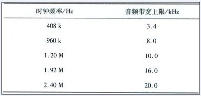 表1 取樣時鐘頻率與音頻帶寬上限對應(yīng)表