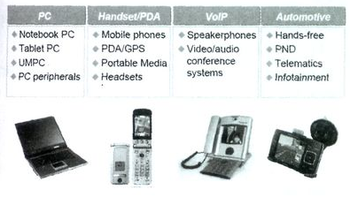數(shù)字ECM或MEMS傳聲器和傳統(tǒng)的ECM傳聲器相比,有著不可取代的優(yōu)勢。首先,移動設(shè)備向小型化數(shù)字化發(fā)展,急需數(shù)字拾音器件和技術(shù)與之配套;第二,數(shù)字設(shè)備包含的功能單元越來越多,如筆記本式計算機,集成了藍牙和WiFi無線功能,傳聲器的安裝位置距離這些干擾源很近,設(shè)備對傳聲器抗干擾性能的要求越來越高;第三,隨著三網(wǎng)合一的發(fā)展,需要上網(wǎng)、視頻和語音傳輸可以同時進行,這在移動設(shè)備中通常會遇到環(huán)境背景噪聲和線路回聲的影響;第四,從提高生產(chǎn)效率的角度考慮,希望對傳聲器元件采用SMT工藝焊接組裝。數(shù)字傳聲器尤其是具有集成電路本質(zhì)的微機電( MEMS)數(shù)字傳聲器更加適合SMT焊接組裝工藝,為了解決系統(tǒng)各種射頻干擾對語音通信產(chǎn)生的噪聲,數(shù)字傳聲器尤其適用于通過算法編程達到陣列拾音技術(shù)的實現(xiàn),對于抑制環(huán)境背景噪聲和消除通話時的線路回聲方面具有突出的技術(shù)優(yōu)勢,數(shù)字傳聲器輸出接口格式同數(shù)字處理系統(tǒng)具有高度的接口兼容性。數(shù)字傳聲器的應(yīng)用見圖7~8.