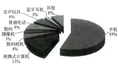 圖9 2010年全球微型駐極體傳聲器應(yīng)用領(lǐng)域市場分布(按需求量)