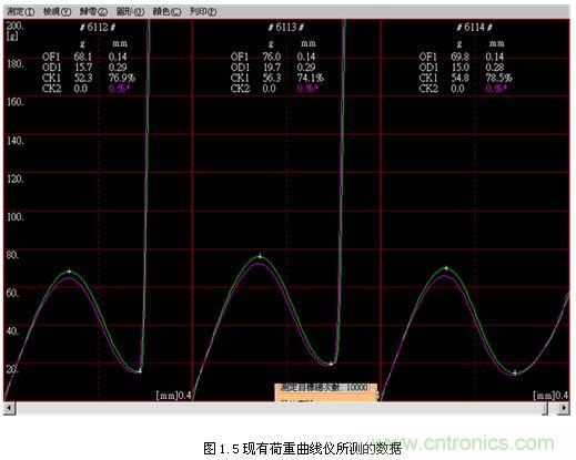 隨著電子技術(shù)與控制技術(shù)的快速發(fā)展,按鍵開關(guān)荷重位移曲線儀也要跟上時代的步伐,從一開始只能測出OF、OD和CK值發(fā)展到現(xiàn)在能同時測出23個參數(shù),有PK,CK,RPK,RLK,LK等值,可以通過設(shè)定上下限來保護儀器被壓壞荷重感應(yīng)器。最小顯示行程也從1mm發(fā)展到現(xiàn)在的0.001mm,最小顯示荷重也從10克精度到現(xiàn)在的0.01克精度,界面設(shè)定也從嵌入式發(fā)展到現(xiàn)在利用WINDOWS中文視窗畫面設(shè)定,操作簡單方便,且所有資料皆可儲存(試驗條件、荷重曲線圖、測試結(jié)果、檢查報表…等等)。