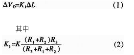 從感應式數字水位傳感器的原理可以得出:流入水位傳感器的電流與水位是成線性變化的,而且當水位固定不變化時,流入水位傳感器的電流是確定值。現假設水位的變化是△L,電流的變化是△I1,于是△I1=K?△L(其中K是比例系數)。在分析帶有運算放大器的電路時,總是把它看成理想運放。根據理想運放的分析方法設輸出電壓變化為△Vo,則可以得到