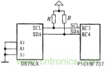 圖3:DS75LX與PIC單片機的硬件接口電路