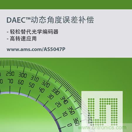 AS5047P具有的DAEC技術能夠補償由于傳感器處理磁場強度原始測量數據發生傳播延遲而導致的動態角度誤差。DAEC技術使得系統設計者無需在外部DSP或微控制器上使用單獨的誤差補償電路。該技術同時使AS5047P實現極高的精確度,在28,000rpm的持續轉速下,其最大誤差僅為 0.34°(不含非線性積分)。