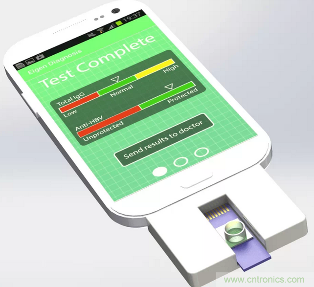 igen Lifescience團(tuán)隊(duì)由斯坦福大學(xué)4名學(xué)生和2名顧問(wèn)組成,利用一年時(shí)間研發(fā)出一款微型設(shè)備,在不到10分鐘的時(shí)間內(nèi)就能測(cè)試出患者是否患有乙型肝炎。該設(shè)備主要利用智能手機(jī)的微處理器,成本低廉,易于攜帶。這款設(shè)備主要針對(duì)醫(yī)療資源緊張的發(fā)展中國(guó)家而設(shè)計(jì),能夠快速確定需要優(yōu)先治療的患者。將來(lái),該設(shè)備的檢測(cè)范圍可能得到進(jìn)一步拓展,如檢測(cè)HIV或心臟病等。