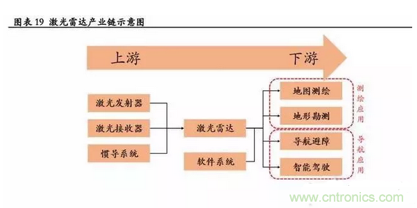 實(shí)際上,產(chǎn)業(yè)鏈的上游制造元件成本不高,不是構(gòu)成成本的主要因素;且因?yàn)榧す饫走_(dá)是下游測(cè)繪、導(dǎo)航等應(yīng)用的核心部件,目前產(chǎn)能稀缺導(dǎo)致供不應(yīng)求,呈現(xiàn)賣(mài)方市場(chǎng),對(duì)下游有很強(qiáng)的定價(jià)權(quán),因此該產(chǎn)業(yè)鏈主要附加值在于激光雷達(dá)部分。